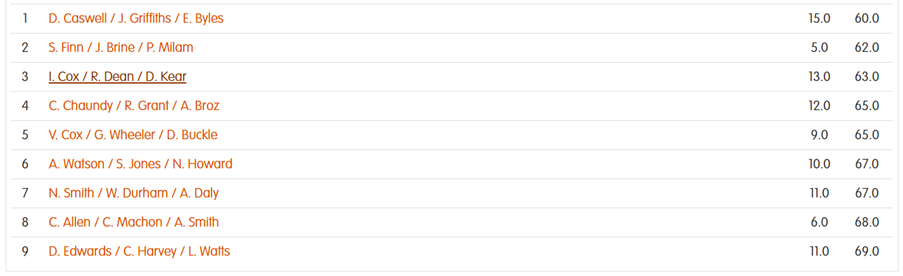 Third place went to Ian Cox (Seniors Captain), Rob Dean, and Ian Kerr with 63. The full results can be found at the end of the article.