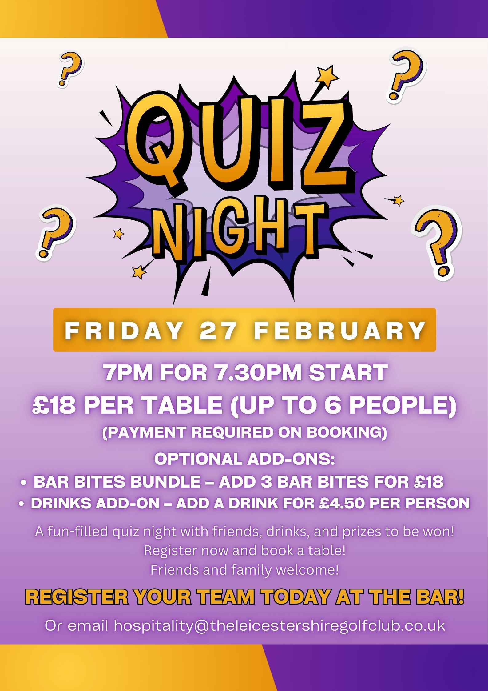 To book, please register your team at the bar or email hospitality@theleicestershiregolfclub.co.uk